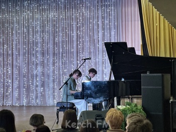 В качестве подарка коллегам по школе учащиеся музыкального отделения устроили концерт из своих лучших номеров.