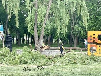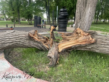 При обследовании Комсомольского парка специалисты не увидели деревья с расколотыми стволами. Как результат - на площадку для воркаута упало расколотое дерево, - передает Керчь.ФМ.