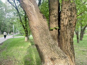 Вдоль тропинки в парке есть еще такие же деревья, которые при небольшом ветре так же могут расколоться и упасть. И не исключено, что упадут на человека.