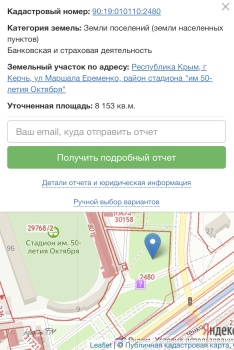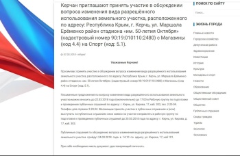 Какой-либо информации по данному участку по поводу изменения вида разрешенного использования на, скажем, банковскую деятельность или страхование, на сайте горсовета Керчи в свободном доступе, как это должно быть, нет. Зато есть информация на сайте Росреестра. Информацию на сайте обновили 31 мая текущего года. Теперь участок площадью 8153 квадратных метра кадастровый номер 90:19:010110:2480 кадастровой стоимостью 5219894, 26 рублей с видом разрешенного использования «Банковская и страховая деятельность».
