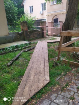 Жители первых этажей по Орджоникидзе 60 и 62 не могут ни спать, ни жить спокойно. Дело в том, что водоводы и благоустроители разобрали тротуар, перекопали везде. Но чтобы люди не жаловались на грязь и отсутствие обязательного тротуара, пустили «мостки» к отмостке жилых домов. И теперь там круглосуточно идут в парк и возвращаются шумные компании, идут больные из больницы в поликлинику и обратно. И все это в нескольких сантиметрах от кухни или кровати. Своей печалью с редакцией Керчь.ФМ поделились пострадавшие от благоустройства.