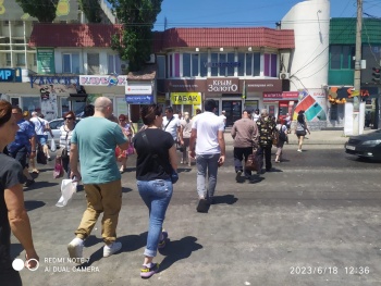 На пешеходном переходе между автовокзалом и рынком асфальт из-за жары расплавился. К нему прилипают и люди, и машины. Пожилая женщина-инвалид несколько минут назад не смогла перейти дорогу, передает Керчь.ФМ.