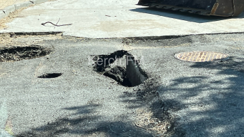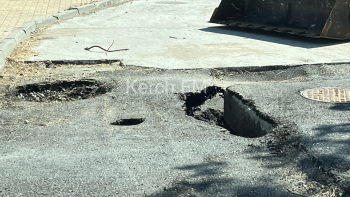 В Керчи на Адмиралтейском проезде не оградили провалившейся участок дороги. Напомним, в него вчера угодила легковушка и провалилась, - передает Керчь.ФМ