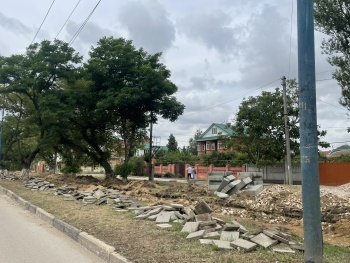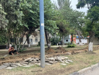 Тротуара нет, но есть на кого посмотреть: в Керчи разбирают плитку колоритные экземпляры