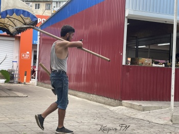 В Керчи разбирают плитку колоритные экземпляры. Главное, чтобы они в темное время суток так с топором не разгуливали. Фото прислали в редакцию Керчь.ФМ постоянные читатели.