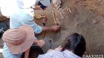 В рамках археологических полевых работ на территории Некрополя городища Артезиан в Ленинском районе обнаружено захоронение молодого мужчины, по-видимому, позднесарматского времени. Об этом рассказал начальник Артезианской археологической экспедиции, профессор Московского педагогического государственного университета Николай Винокуров, - передает Керчь.ФМ.