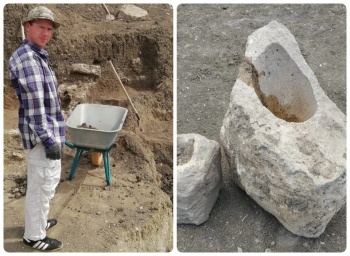 Помимо наконечника копья во время выборки грунта были обнаружены и два жертвенника, представлявшие из себя каменные ванночки с сквозным отверстием на дне для стока крови и других жертвенных возлияний.
