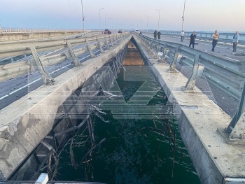 В соцсети появились новые кадры разрушения Крымского моста в результате ЧП. Власти Крыма еще не заявили о точной причине. На месте еще работает следственная группа, - передает Керчь.ФМ.