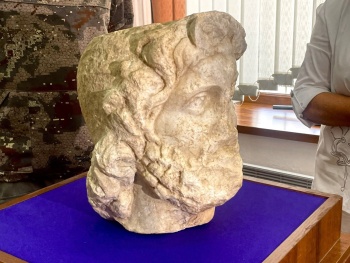 Ученые расшифровали записи на плитах. Теперь доподлинно известно, что это голова статуи, изображавшей Боспорского царя Фарнака. Он был сыном царя Митридата VI Евпатора и правил Боспорским царством с 63 до 47 года до н.э. По словам Винокурова Фарнак изображен в образе Зевса.