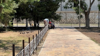Напомним, подрядная организация «Артстрой» установила на объекте новые бордюры и выложила плитку.