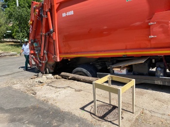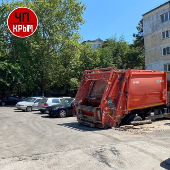 На новом асфальте провалился мусоровоз в столице Крыма. Инцидент произошел вчера, 6 августа, около школы. Об этом сообщает ТГ-канал «ЧП Крым», - передает Керчь.ФМ.