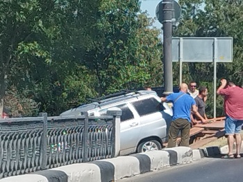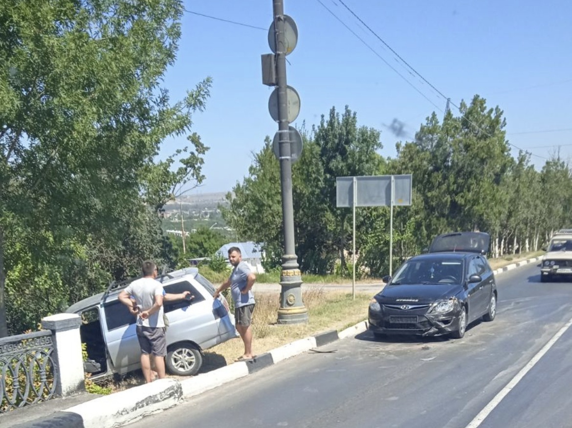 После столкновения автомобилей Hyundai и ВАЗ, последнему стало мало места на дороге. Ещё несколько сантиметров и машина оказалась бы на железнодорожных путях под мостом, - передает Керчь.ФМ.