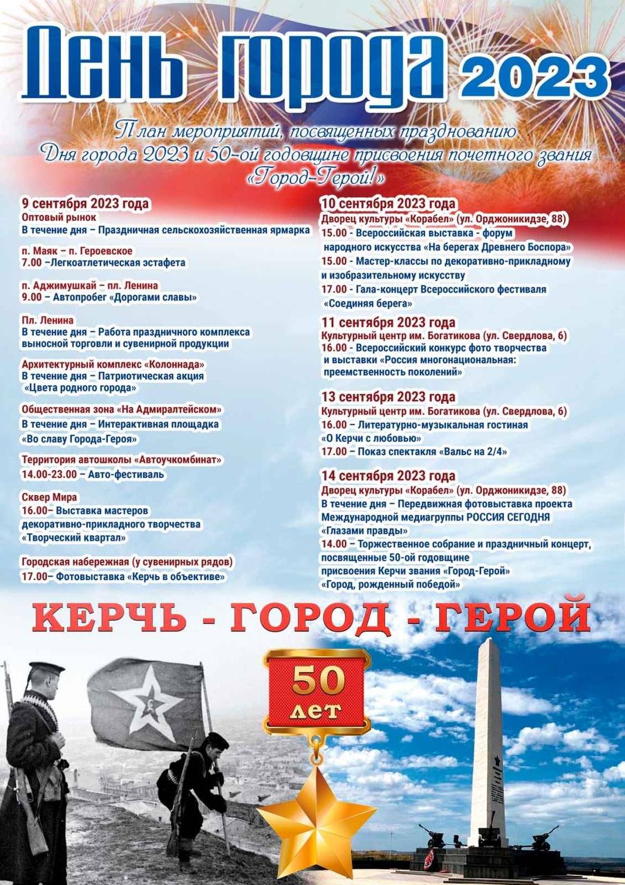 С 9 до 14 продлятся празднования Дня города Керчь. В этом году исполняется 50 лет со дня присвоения звания Город-герой, - передает Керчь. ФМ.