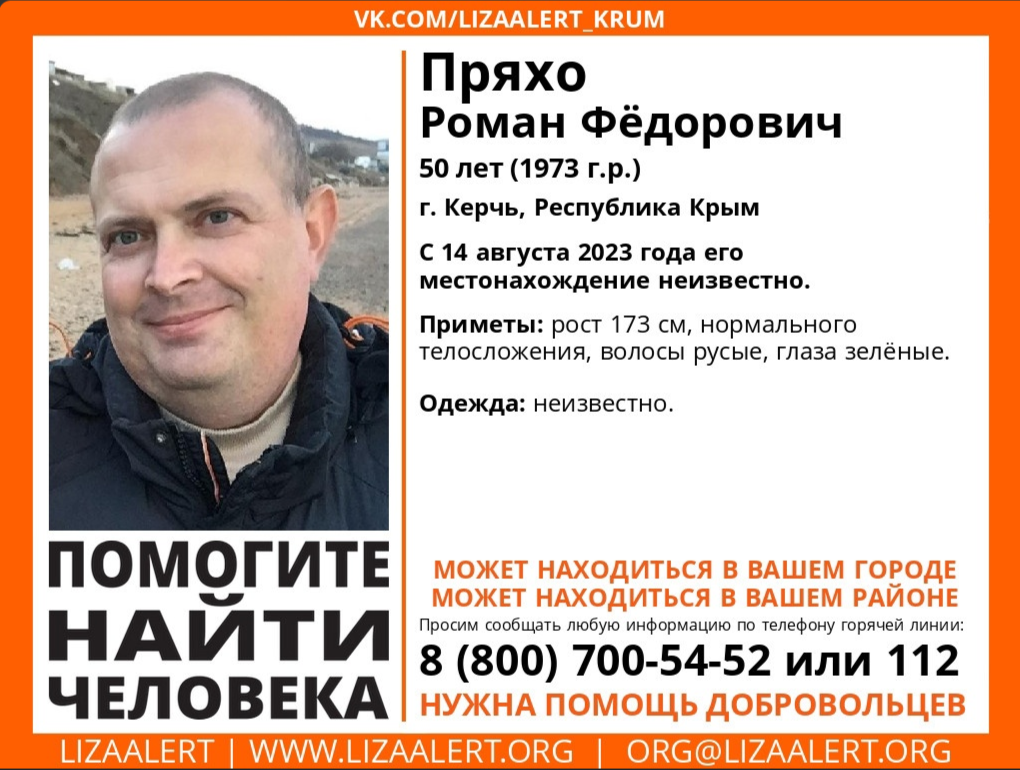 "Пропал #Пряхо Роман Фёдорович, 50 лет (1973 г.р)