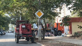 Стоит отметить, что одна полоса дороги частично перекрыта. Перед работами установили предупреждающие дорожные знак