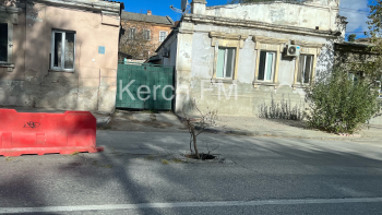 В Керчи на улице Свердлова посреди дороги появилась очередная икебана. Её вставили в открытый люк, который оповещает водителей о ловушке, - передает Керчь.ФМ.