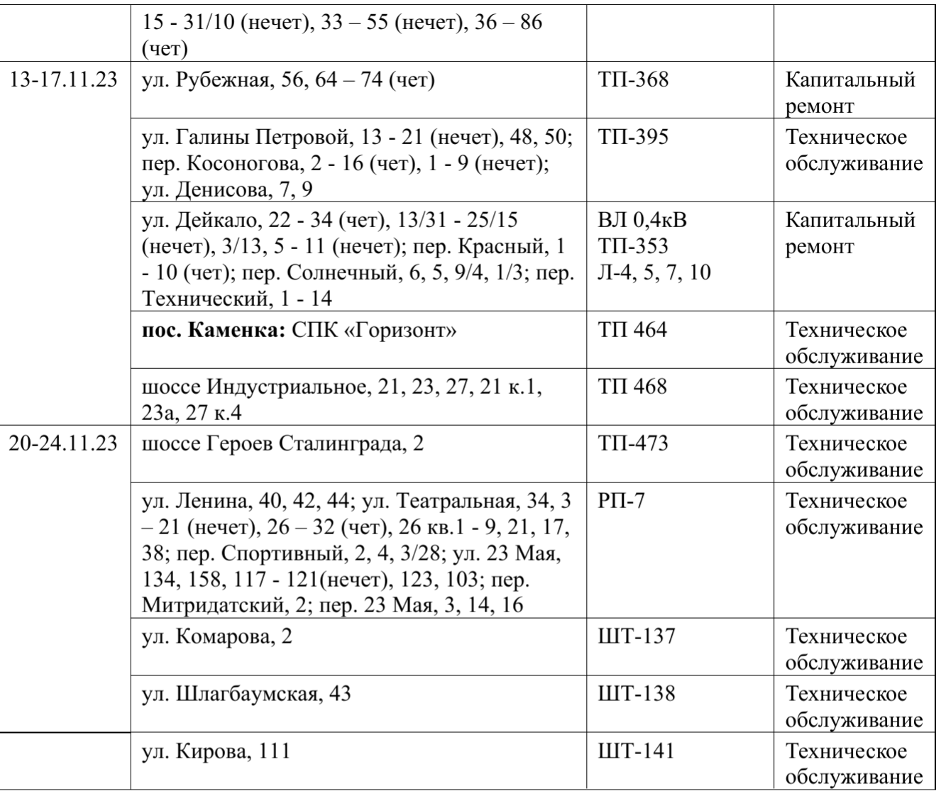 В связи с плановым ремонтом электрооборудования в ноябре в период с 8 до 17 часов будут происходить отключения линий электропередачи согласно нижеприведенному графику. Об этом сообщает ГУП РК «Крымэнерго», - передает Керчь.ФМ.