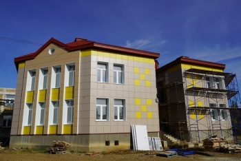 Также, близится к завершению строительство детского сада на Вокзальном шоссе. Фасадные работы на объекте практически завершены. Сейчас строители окрашивают перила входной группы. Частично завезена мебель. Обустраивают детские площадки с игровыми элементами.