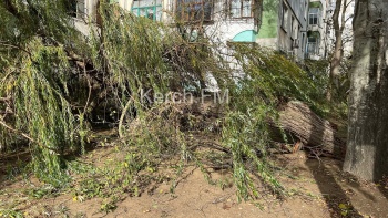 В Керчи деревья не выдерживают сильного ветра. Так, рухнуло дерево около дома на Сморжевского, 3. Часть его упала на тротуар, а большая часть, к счастью, на газон, - передает Керчь.ФМ.
