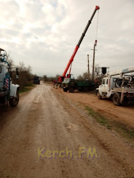 Поврежденные электроопоры Крымэнерго с сегодняшнего утра меняют на новые. Как только уровень воды позволил безопасно проводить работы, КРЭС доставил на участок 6 единиц спецтехники, усиленную бригаду электриков. Привлекли также технику из Феодосии.