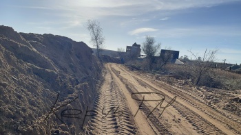 Сейчас тракторами поразгребали по сторонам песок с дороги, тем самым указав правильный путь к жилым домам. Но песок тот еще строительный материал для дороги. Уже видны следы борьбы водителей с такой дорогой и зарытыми машинами.