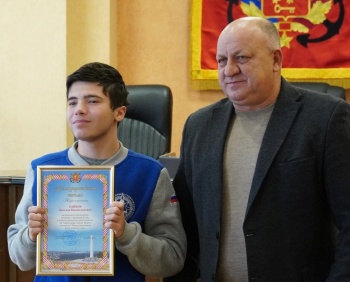 Чиновники поздравили керченских добровольцев и вручил городские награды.