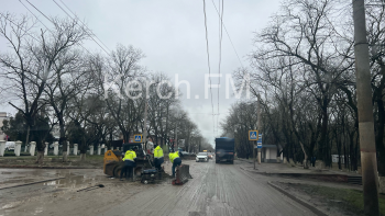 В Керчи на Вокзальном шоссе возобновились дорожные работы. Специалисты с помощью спец техники проводят работы около люков, - передает Керчь.ФМ.