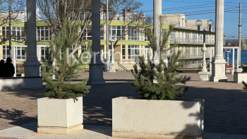 В Керчи у главной новогодней ёлки установили в вазоны шесть сосен. В прошлом году их украсили игрушками, а в этом, видимо, забыли или просто не хватило украшений, - передает Керчь.ФМ.