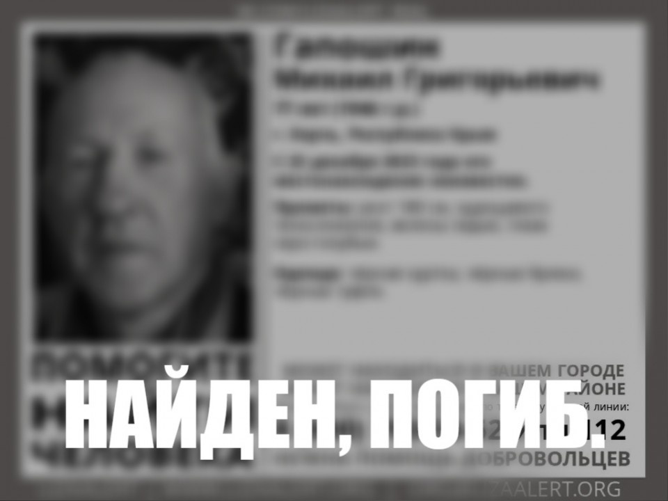 Спустя два дня после начала поисков, 28 декабря поздно вечером, мужчину нашли погибшим.
