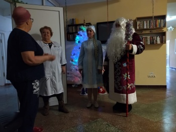Один из самых любимых всеми, долгожданных, радостных и душевных праздников. А для наших больных особенный, ведь это год больших надежд на выздоровление. Во всех отделения больницы украшены стены, окна, и конечно напряжены ёлки. Для праздничного настроения зам. гл. Кибардина Ирина Васильевна пригласила Деда Мороза и Снегурочку, которые обошли все палаты. Поздравили с праздником, пожелали скорейшего выздоровления и подарили сладкие подарки. Поздравил с праздником больных коллектив больницы во главе с зам. гл. Ириной Васильевной. Больные выразили огромную благодарность руководству больницы за то, что они лечат не только лекарствами, но и нашу душу. Побольше бы таких учреждений в Республике Крым", - прислали в редакцию письмо и фотографии.