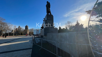 В Керчи оградили памятник В.И. Ленину. Несмотря на то, что он находится не в лучшем состоянии, рядом с ним не побоялись установить новогодние декорации, - передает Керчь.ФМ.