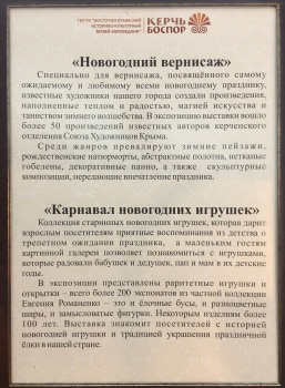 В Керчи 5 января в Картинной галерее Восточно-Крымского историко-культурного музея-заповедника состоялось торжественное открытие выставки - «Карнавал новогодних игрушек», - передает Керчь.ФМ.