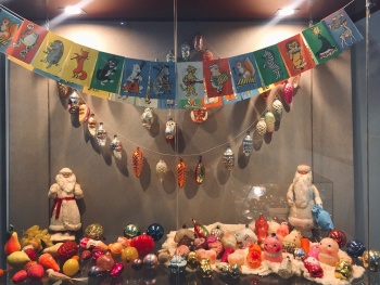 В экспозиции представлены раритетные игрушки и открытки - всего более 200 экспонатов из разных уголков бывшего Советского Союза, - это и ёлочные бусы, и разноцветные шары, и замысловатые фигурки. Некоторым изделиям более 100 лет. Выставка познакомила посетителей с историей новогодней игрушки и традицией украшения праздничной ёлки в нашей стране.