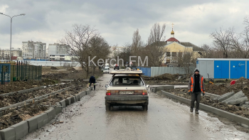 В Керчи по улице Войно-Ясенецкого возобновились дорожные работы. Три специалиста вышли на работу. Они производят работы по установке новых бордюров вдоль дороги. Стоит отметить, что их устанавливают прямо в глубокие лужи, - передает Керчь.ФМ.