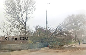 На Партизанском мосту в Керчи упало дерево и перегородило дорогу и пешеходную часть. Движение регулирует сотрудник полиции, - передает Керчь.ФМ.