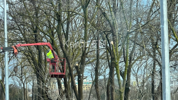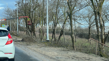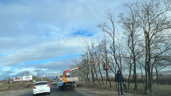 В Керчи на выезде из города производили обрезку деревьев. Стоит отметить, что рабочие оставили спиленные ветки на газоне, - передает Керчь.ФМ.