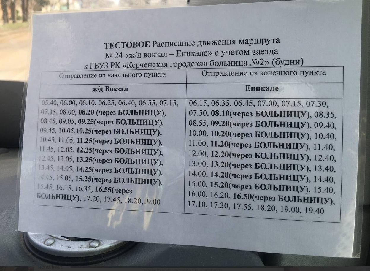 Напоминаем расписание автобуса 24 с остановкой у больницы по 12 Апреля в Керчи Расписание тестовое. Перевозчик совместно с администрацией на время тестирования наблюдает за наполняемостью и востребованностью, - передает Керчь.ФМ.