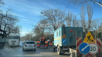 В Керчи 7 февраля на улице Кирова проводят ямочный ремонт. Сотрудники «Крымавтодора» прямо в ямы укладывают асфальт. Стоит отметить, вчера был дождь и дорога была с лужами, - передает Керчь.ФМ.