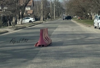 Не нужно говорить, что после прохождения колонны грузовых многотонных груженных автомобилей со стороны переправы или Стройгородка от этого пластикового ограждения может остаться разве что пятно. Открытый колодец там не первый день, поэтому пластик то появляется, то исчезает с дороги. Такой вот он Керченский гуляющий пластик.