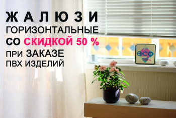 Жалюзи горизонтальные со скидкой 50 % при заказе ПВХ изделий