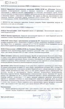 "История болезни со слов Светы: «в октябре пошла к врачу из за боли в коленном суставе, меня посмотрели, сказали, что ничего нет, сказали мазать мазью, через 2 недели боль стала больше, я снова пришла к врачу, он сделал рентген, ничего снова не увидел, сказал пить таблетки-обезболы, через еще недели 3 боль стала еще больше, пришла - дал направление на мрт, там было выявлено образование в коленном суставе, врач направил в Симферополь. с этим я приехала, на следующий день меня госпитализировали для сбора нужных анализов (делали мрт, кт, биопсию и т. п), отпустили домой, дома как таковой нагрузки не было, на утро 8 февраля была невыносимая боль в ноге, 10 февраля поехали снова в Симферополь, где выявили патологический перелом.»
