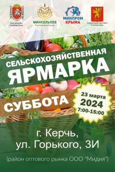 23 марта планируется проведение специализированной (сельскохозяйственной) ярмарки по реализации продовольственной и сельскохозяйственной продукции по адресу: ул. Горького, 3И (район Оптово-розничного рынка "Мидия").