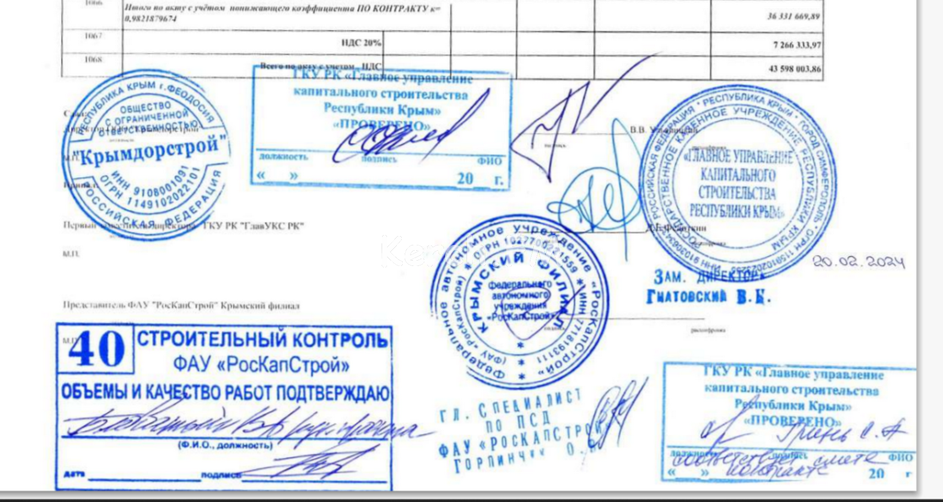Так что это садик от строителей крымских дорог. К сожалению, Брусаков не сказал на какой именно заключительной стадии оформление документации. Судя по данным Госзакупок акт приемки - последний опубликованный документ - подписали больше месяца назад, 26 февраля 2024 года.