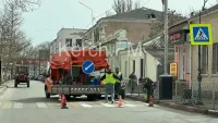 В Керчи дорожники наносят разметку на улице Пирогова, а именно пешеходные переходы. Перед работами специалисты устанавливали предупреждающие дорожные знаки, - передает Керчь.ФМ.