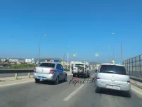 На путепроводе по шоссе Героев Сталинграда около 13 часов произошло ДТП. Внедорожник перед пешеходным переходом допустил столкновение с малолитражкой Nissan Micra, - передает Керчь.ФМ.
