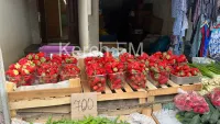 Аромат на рынке стоит насыщенный. Горожане скупают клубнику килограммами.
