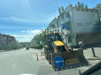 Сегодня специалисты разрыли дорогу для устранения течи. Перед работами установили предупреждающие дорожные знаки.