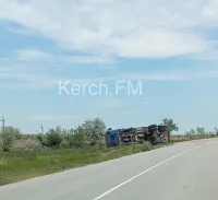 На спуске в Новоотрадное 27 мая перевернулся грузовик. Автомобиль прилег на бок на газон. Он перевозил песок, - передает Керчь.ФМ.