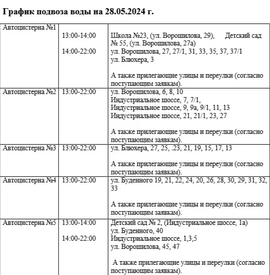 Керченский филиал приносит извинения за причиненные неудобства. Населению и предприятиям необходимо иметь запас питьевой воды на этот период времени. Водоканалом будет обеспечен подвоз питьевой воды специализированным транспортом, согласно графику и поступающим заявкам.