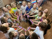 В общем зале царила патриотическая атмосфера, дети нарисовали на щеках триколор, а в руках держали флажки, шарики и голубей мира, сделанных из бумаги. Ребята, периодически обмениваясь друг с другом атрибутикой, общались и были вовлечены в процесс мероприятия.
